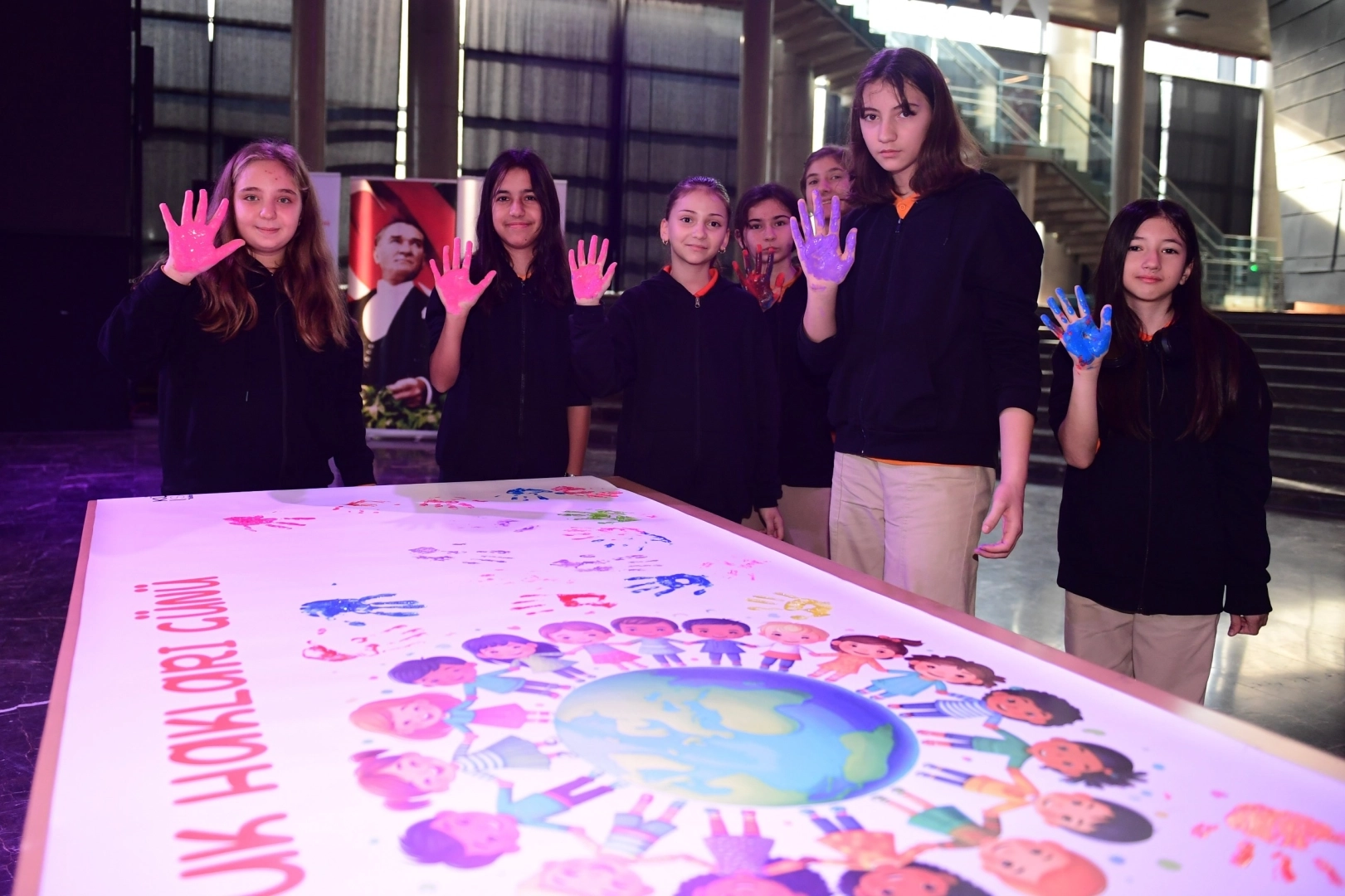 20 Kasım Dünya Çocuk Hakları Günü’ne özel olarak hazırlanan vinillere de rengarenk el izlerini bırakan çocuklar; eşitlik hakkı, eğitim hakkı, sağlık hakkı, oyun ve eğlence hakkı, ifade özgürlüğü hakkı, şiddetten korunma hakkı gibi pek çok haklarına ilişkin bilgi sahibi oldu.
