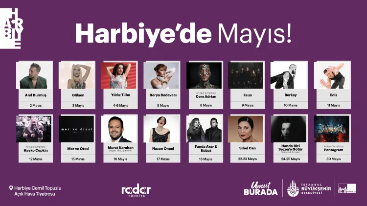Yaz sezonu boyunca hem yerli müziğin dev isimlerine hem de uluslararası yıldızlara ev sahipliği yapacak olan Harbiye, zengin seçkisiyle İstanbul’un kültür sanat takvimine yön verecek. Pop müzikten klasik müzik resitallerine, cazın büyüleyici tınılarından görkemli sahne şovlarına kadar geniş bir yelpaze izleyiciyle buluşacak.