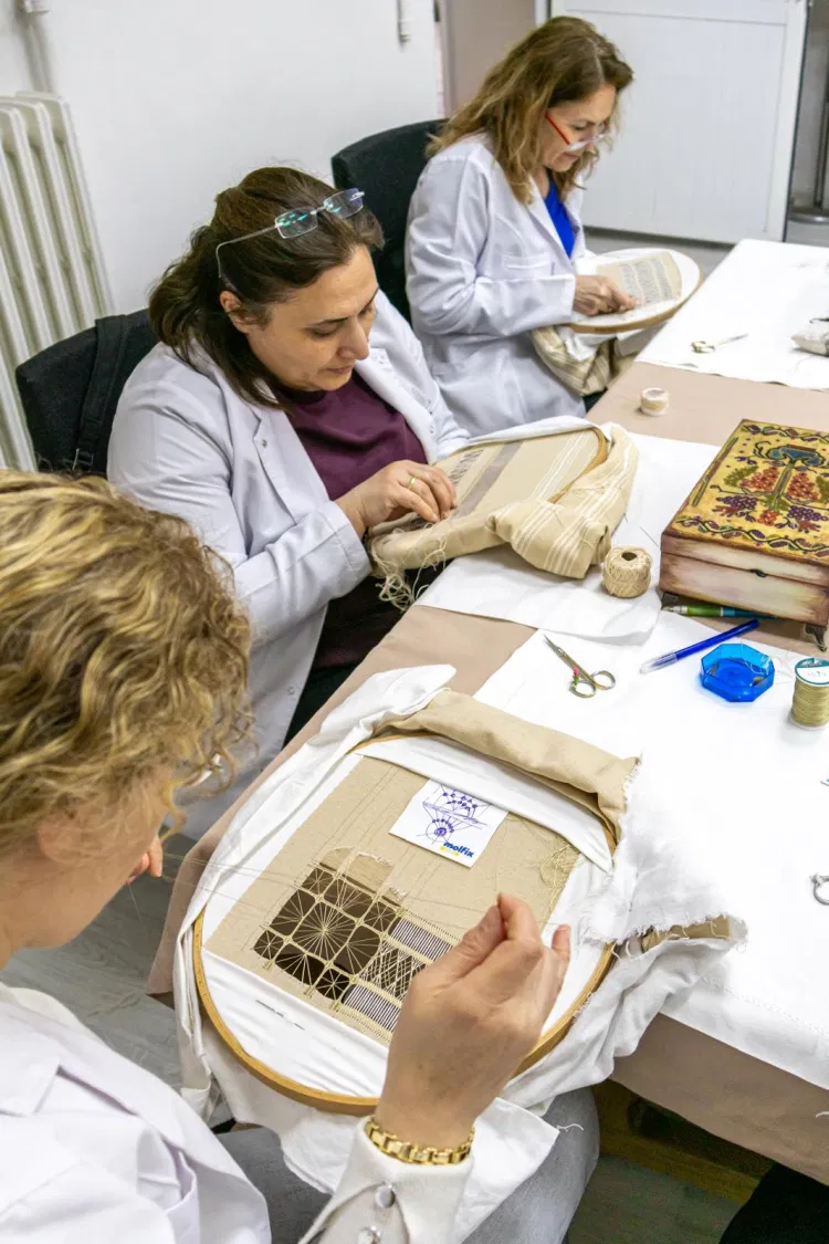 BURSA (İGFA) - Bursa Olgunlaşma Enstitüsü El Nakışları Sanat Evi’nde, Yalova Çınarcık’ın coğrafi işaretli “Çınarcık İşi”nin yaşatılması ve gelecek kuşaklara aktarılması amacıyla, Geleneksel El Sanatları Devlet Sanatçısı Sayın Bilge Şahin’in eğitmenliğinde gerçekleştirilen bu özel çalışma, sanatseverlerle buluştu. “Aile Sandığı: Her Sandık Bir Hikâye – Yedi Bölge Yedi Sandık” temasıyla şekillenen etkinlik, geçmişten günümüze uzanan kültürel sürekliliği görünür kılmayı amaçladı.